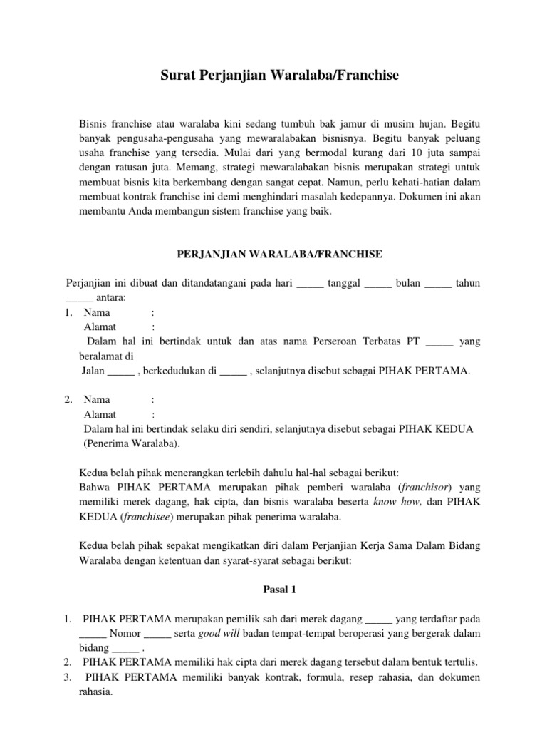 Contoh Surat Perjanjian Franchise Atau Waralaba Yang Baik ... from detiklife.com Aug 05, 2021 · pengumuman lowongan kerja terbaru untuk karir cpns, bumn, bank, pegadaian, swasta, formasi cpns 2020 untuk lulusan sma smk ma d1 d2 d3 d4 s1 dan s2 Pt amerta indah otsuka seiring waktu terus mengalami perkembangan. Jul 01, 2021 · zodiak taurus bulan ini, bisa jadi akan ada kontrak kerja baru. Jun 28, 2021 · sebagian orang memanfaatkan promo indomaret sebagai momen kulakan barang untuk dijual lagi. Dengan berkolaborasi dengan bima ini kami tidak perlu mulai dari nol lagi, karena aplikasi centra yg dikembangkan oleh bima telah terbukti dan diakui di area kerja pt pelindo iii grup, jelas dia. Melalui situs resminya, katalog yang berlaku hingga 8 juni ini memberikan program belanja tebus hemat, yakni dengan minimum pembelanjaan rp 50.000 untuk produk sponsor seperti campina, sari roto, yoforia, cimory, fiesta, greenfields, glico wings, aice, sunpride, wong coco, dan wall's. Yang paling baru, eritel pt matahari putra prima tbk. Jun 11, 2021 · 1.